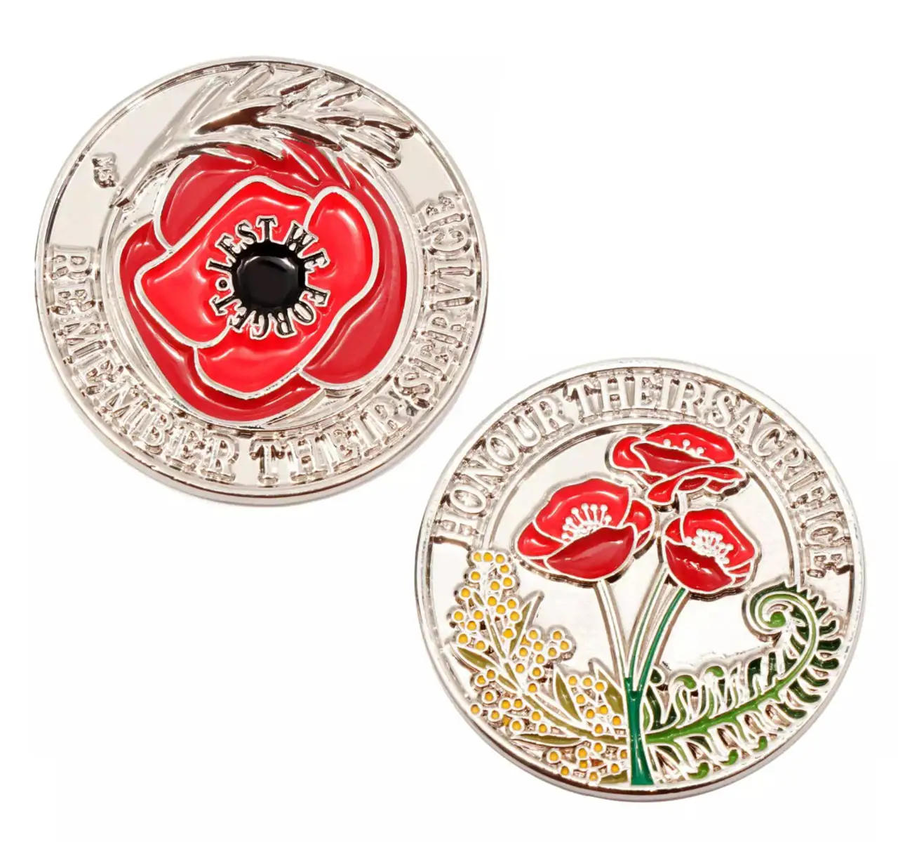 Golden Fern & Wattle Wreath 3D Poppy Limited Edition Lapel Pin