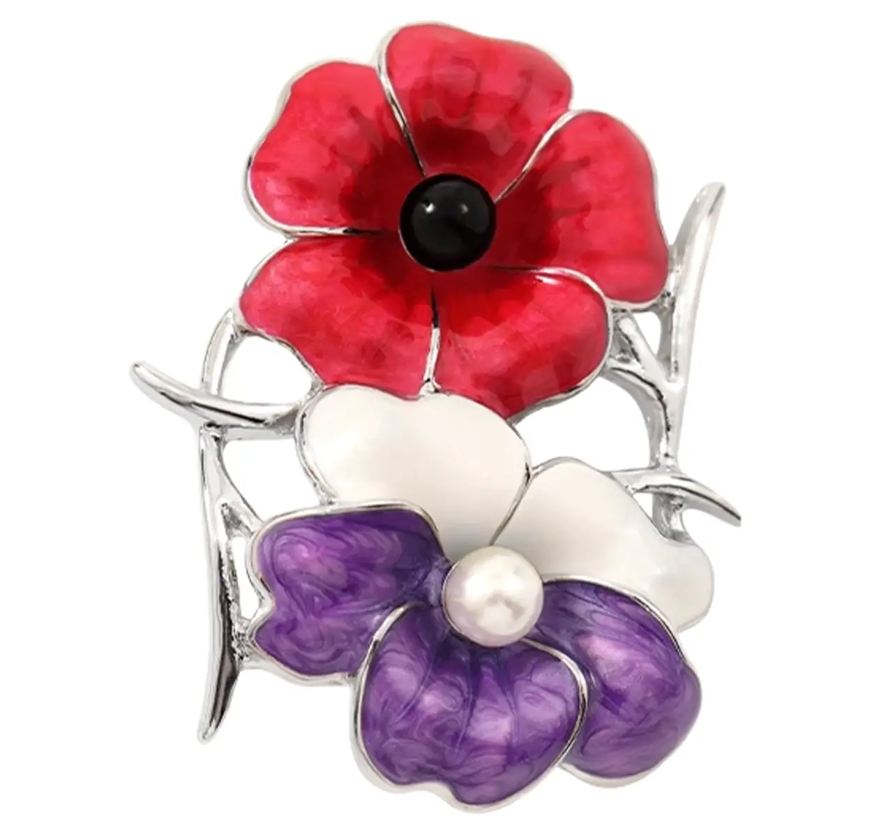 Remember Their Service Red & Purple Poppy Lapel Pin