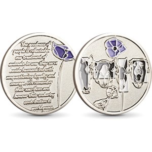 Purple Poppy 48mm medallion sandblast finished with rich enamel. RRP: $10.00 Order now