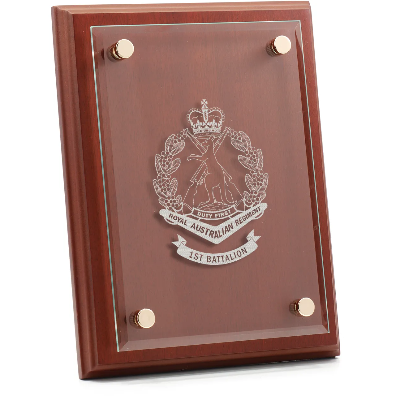 1st Battalion, Royal Australian Regiment Engraved Delta Floating Glass Award 200mm features premium glass and timber design to honour military milestones. Read more..
