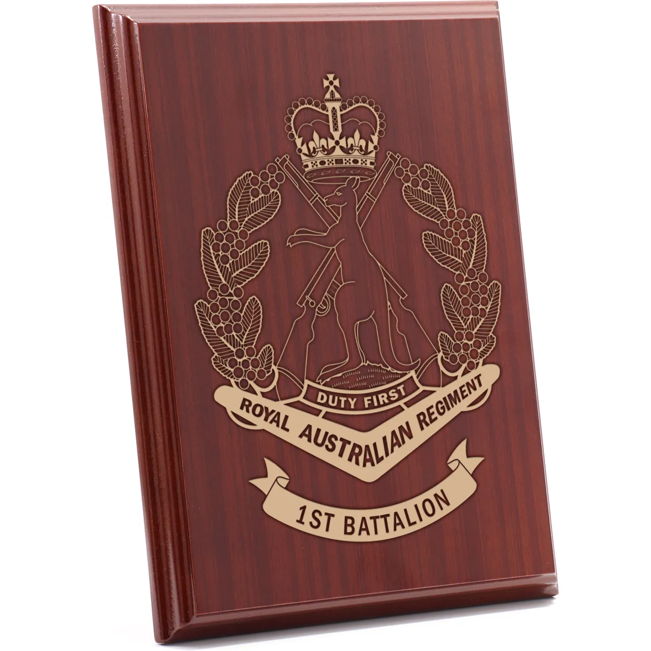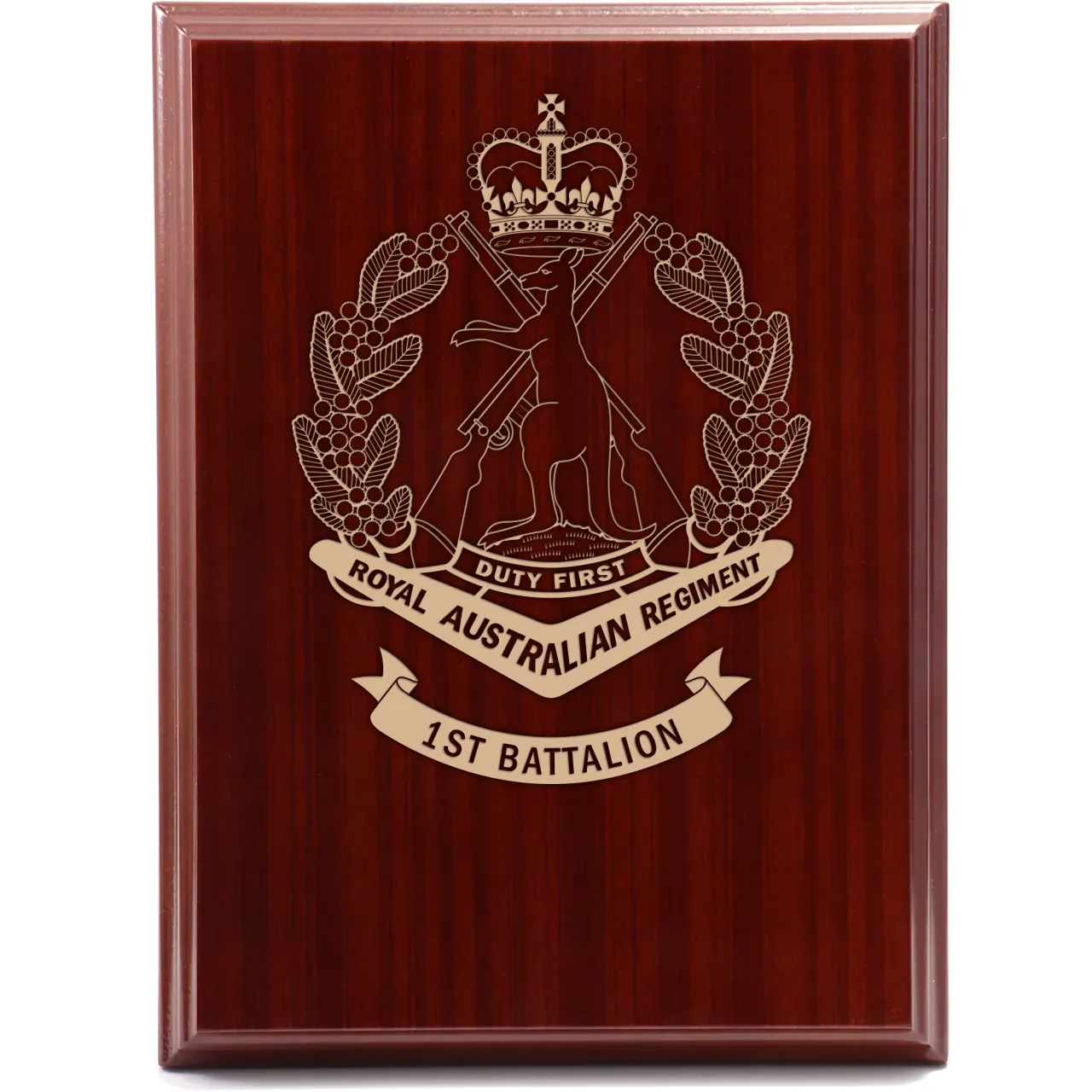 The 1st Battalion, Royal Australian Regiment Engraved Omega Timber Award 200mm is an exceptional choice for military presentation and farewell gifts. Perfect for honouring service members or commemorating special milestones, the award beautifully combines elegance and tradition, ensuring a lasting impression.