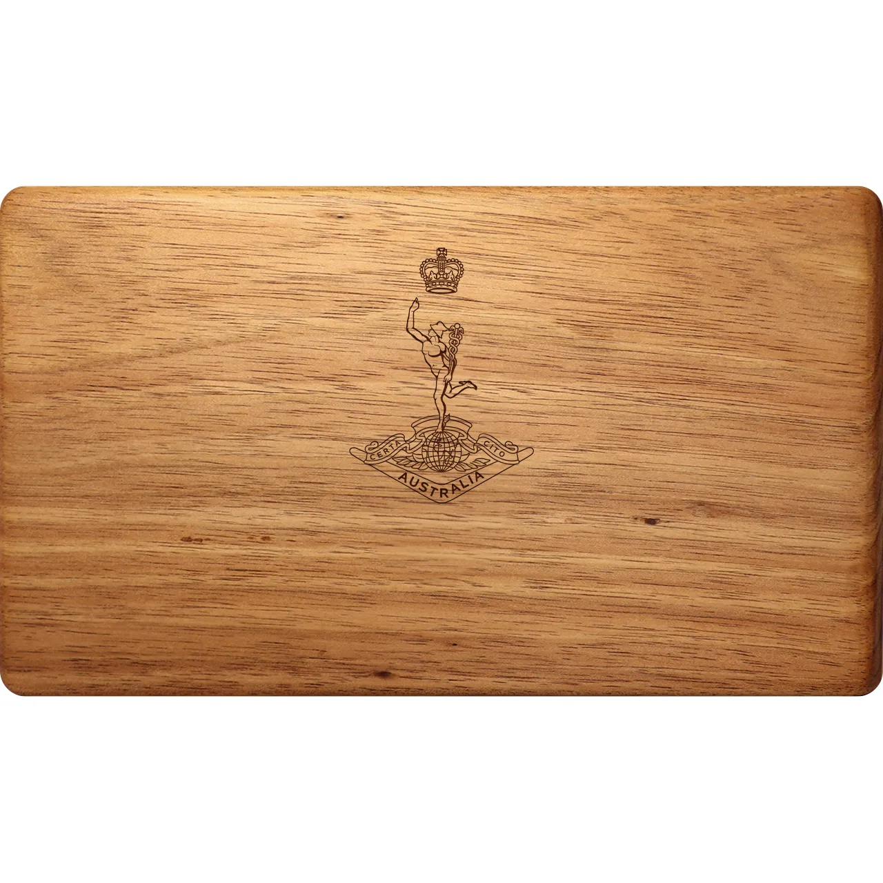 Customisable, laser-engraved Royal Australian Corps of Signals (RASigs) Tasmanian Blackwood Two-Tiered Medal Display Box – an ideal presentation gift. Read more..