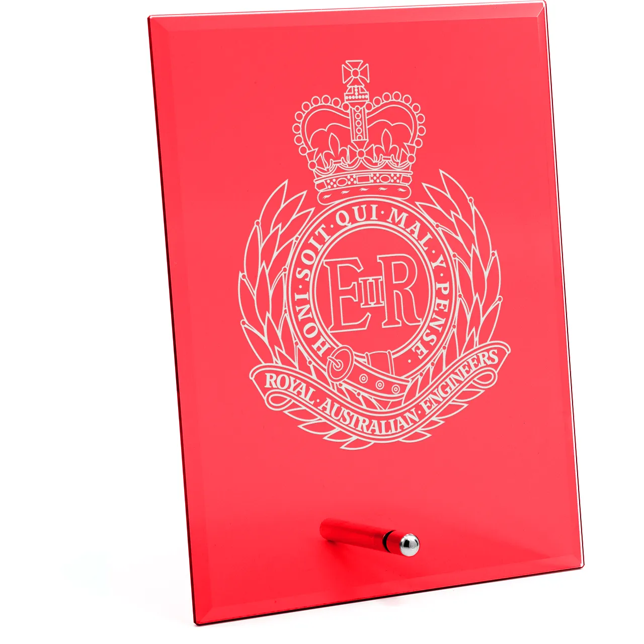 Royal Australian Engineers Engraved Nebula Red Glass Award 200mm in Gift Box is ideal for military presentations and farewell gifts. Read more..