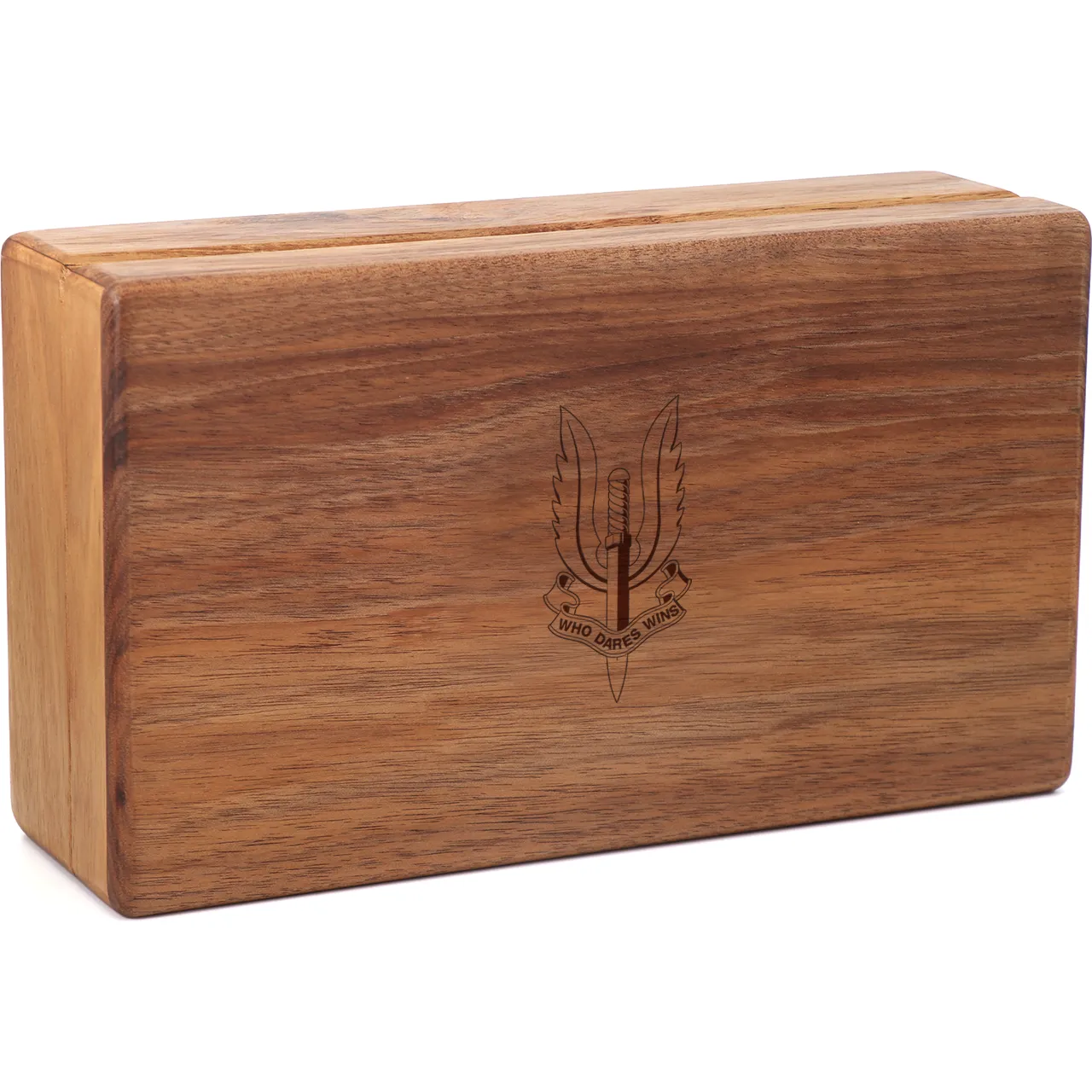 Customisable, laser-engraved Special Air Service Regiment (SASR) Tasmanian Blackwood Two-Tiered Medal Display Box – an ideal presentation gift. Read more..