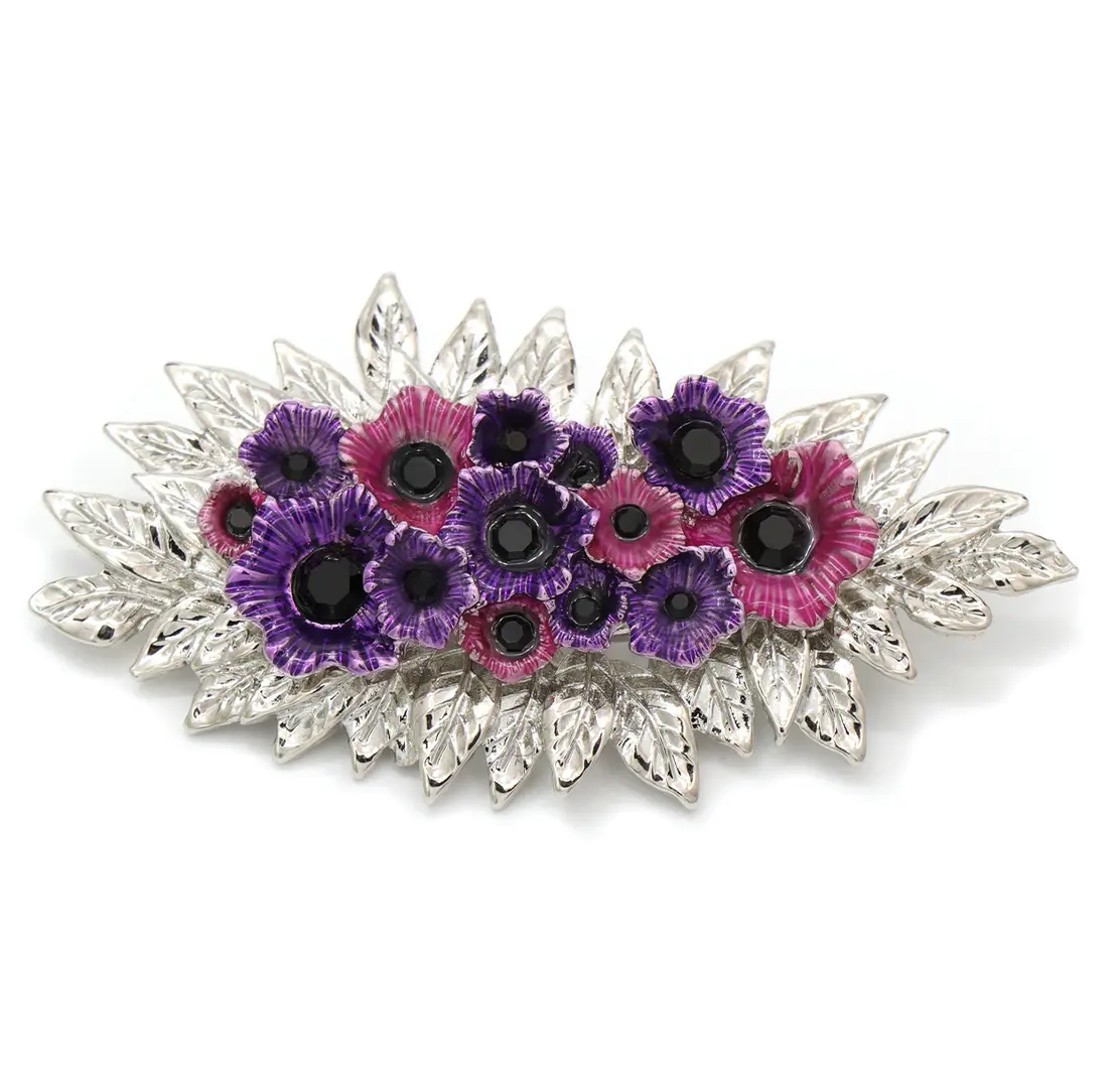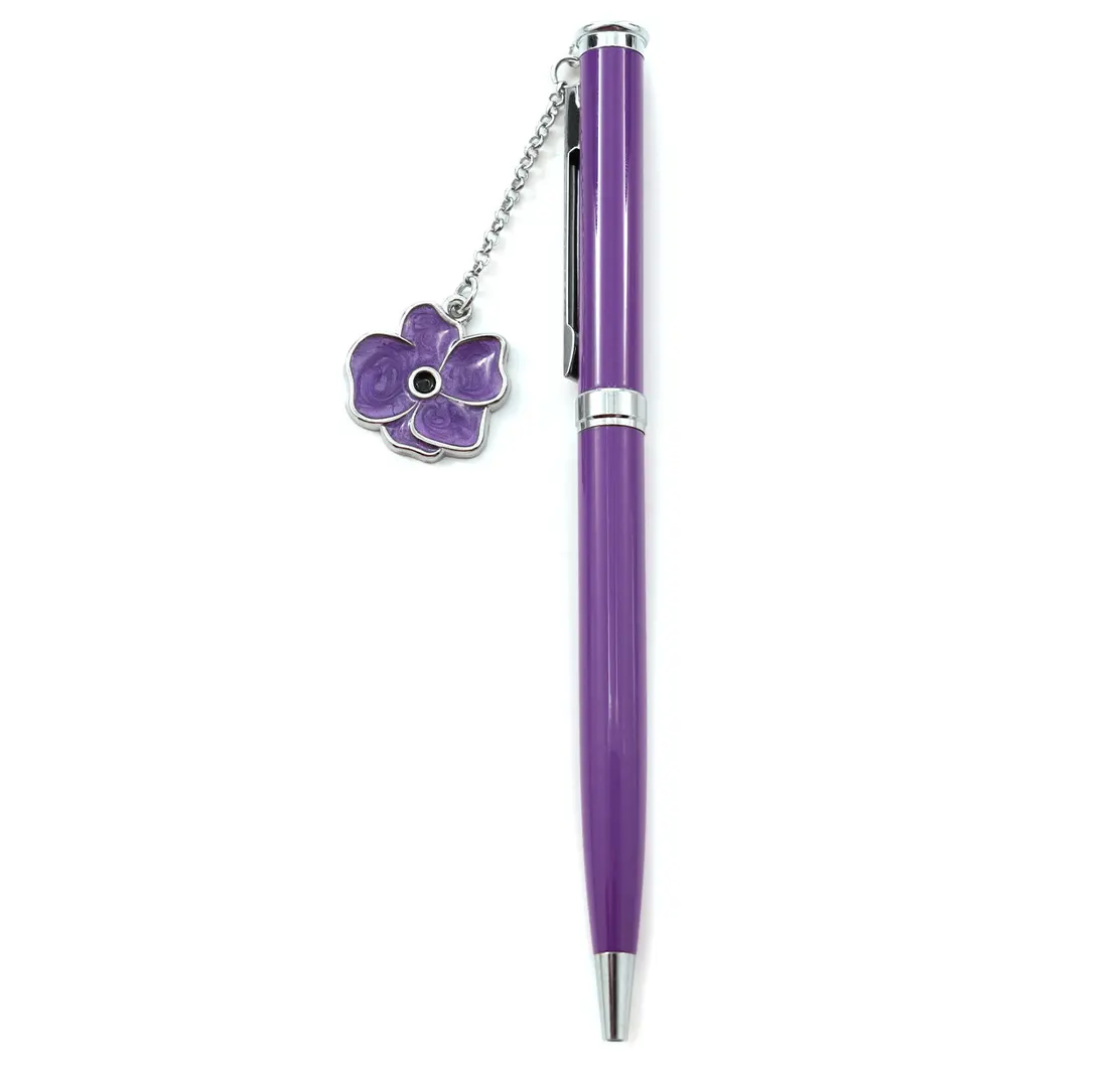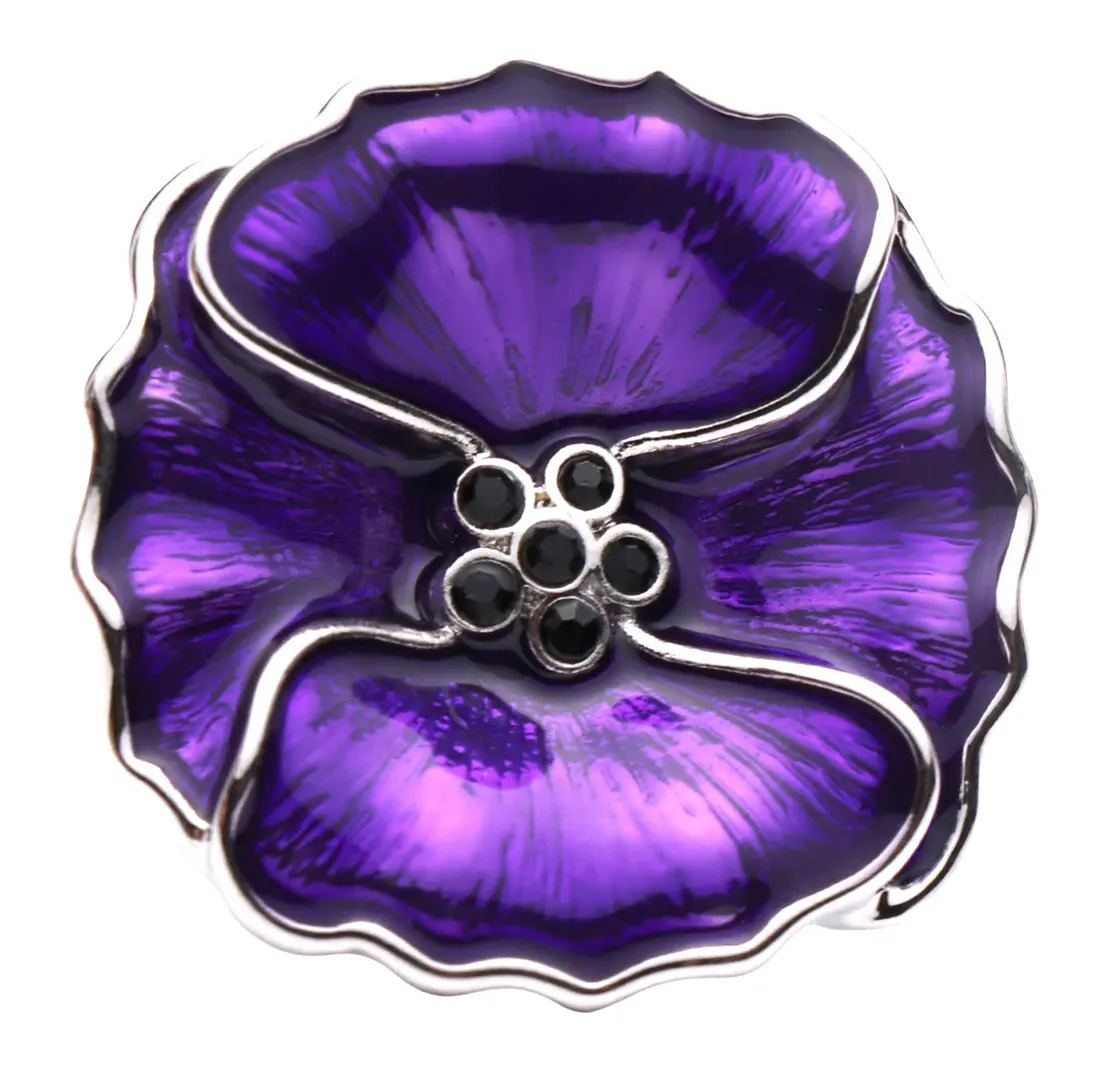 3D Silver Ribbon Purple Poppy Lapel Pin